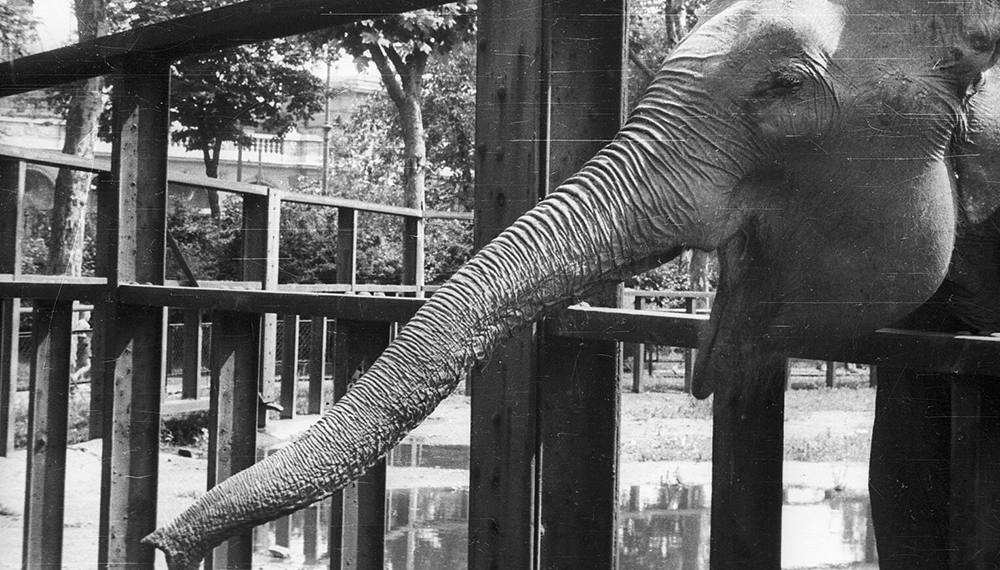 В ночь с 4 на 5 января 1942 года Московский зоопарк разбомбили фугасами и зажигательными бомбами, произошел пожар. Загорелся обезьянник, вольеры с копытными и слонами. Погибли несколько сотрудников, но всех животных удалось спасти. Слоны вышли сами, встали в ров и поливали себя водой. Один из слонов, набрав воды в хобот, помогал тушить зажигательную бомбу.