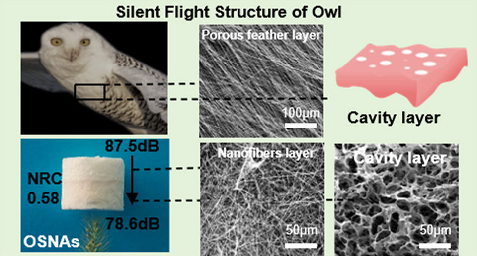 Статья о разработке вышла в журнале ACS Applied Materials & Interfaces. Новый материал, имитирующий структуру перьев и кожи совы, можно использовать в автомобилях и на производственных предприятиях для уменьшения транспортного и промышленного шума.