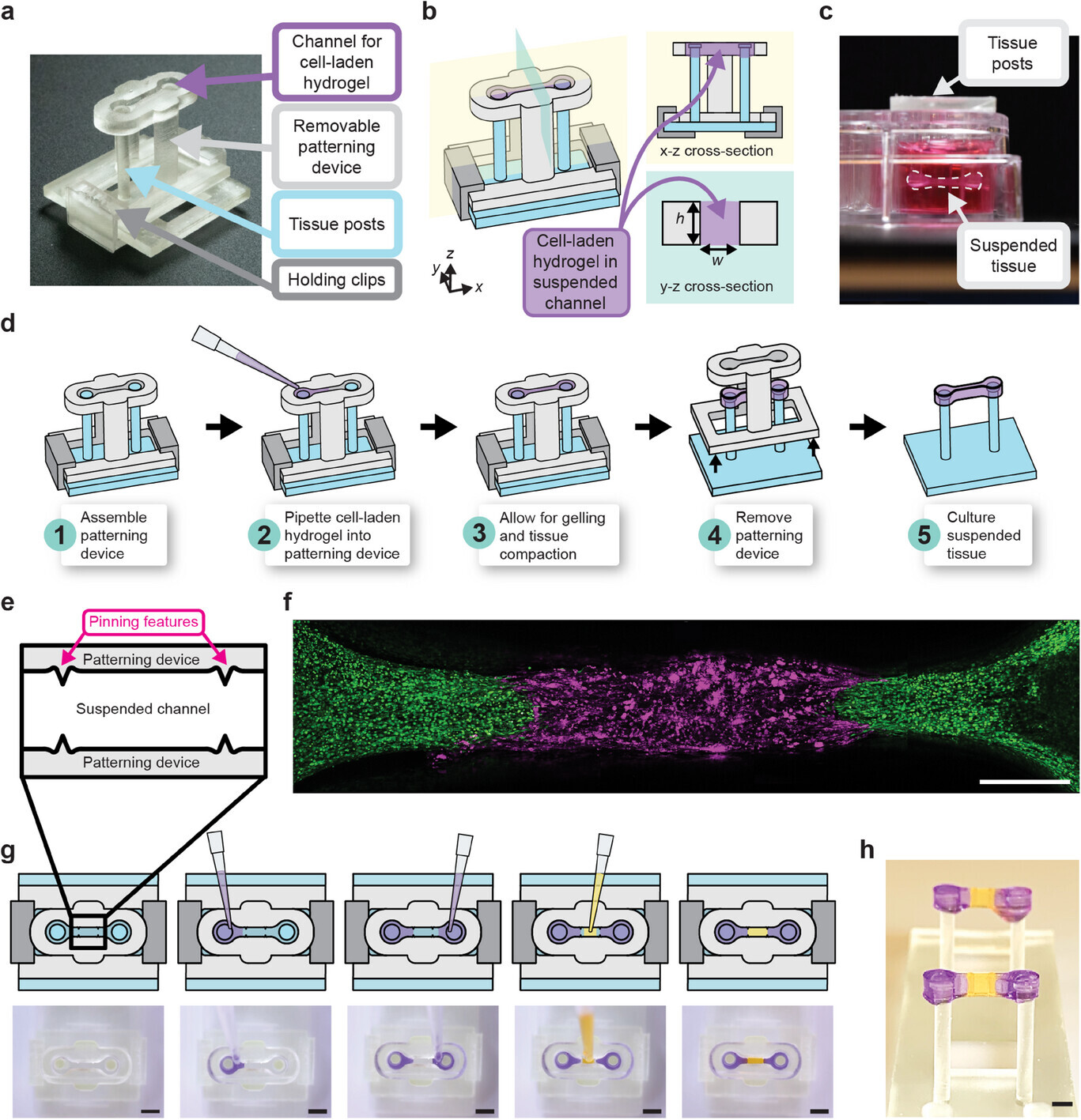 Ключевая особенность — разлагаемые стенки устройства, разработанные группой Коула Дефореста. После формирования ткани стенки растворяются, оставляя ткань нетронутой, что предотвращает ее деформацию.