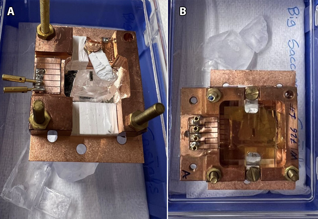 b) Модуль фотодетектора, установленный над кристаллом сахара.