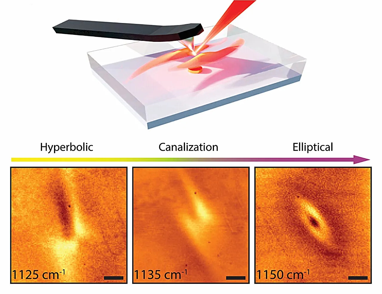 Как показало исследование, в двумерном гипсе эти волны претерпевают топологический переход, меняя свое поведение с гиперболического на эллиптическое, проходя через уникальное каналированное состояние. Такой переход позволяет легко управлять распространением света через материал.
