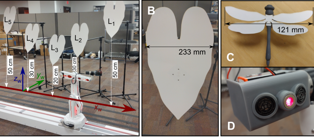 Устройство было оснащено ультразвуковыми датчиками и исследовало макеты листьев с искусственной стрекозой. Робот не измерял размеры или наклон листьев, а ориентировался на изменения эхосигнала.