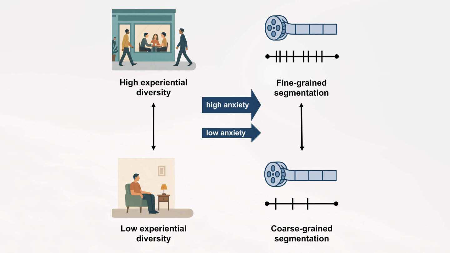 Таким образом ученые получили данные о том, как именно разные люди «разбивают» поток информации на события. Дополнительно участников опросили о разнообразии их жизни: сколько людей они видели и с кем общались за последний месяц, как часто посещали новые места, насколько разнообразна их домашняя среда и ежедневные маршруты. Эти показатели назвали «экспериментальным разнообразием» — то есть количеством перемен и новизны, с которыми человек сталкивается каждый день.