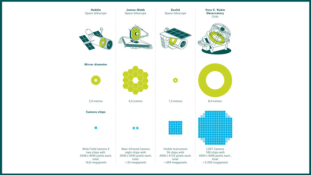 Космические телескопы «Хаббл», «Джеймс Уэбб», «Евклид» и наземная обсерватория имени Веры Рубин в Чили — это передовые инструменты, каждый из которых играет уникальную роль в изучении космоса. Что делает их особенными, и почему их данные так важны для науки? Об этом рассказал Институт Макса Планка (Германия).
