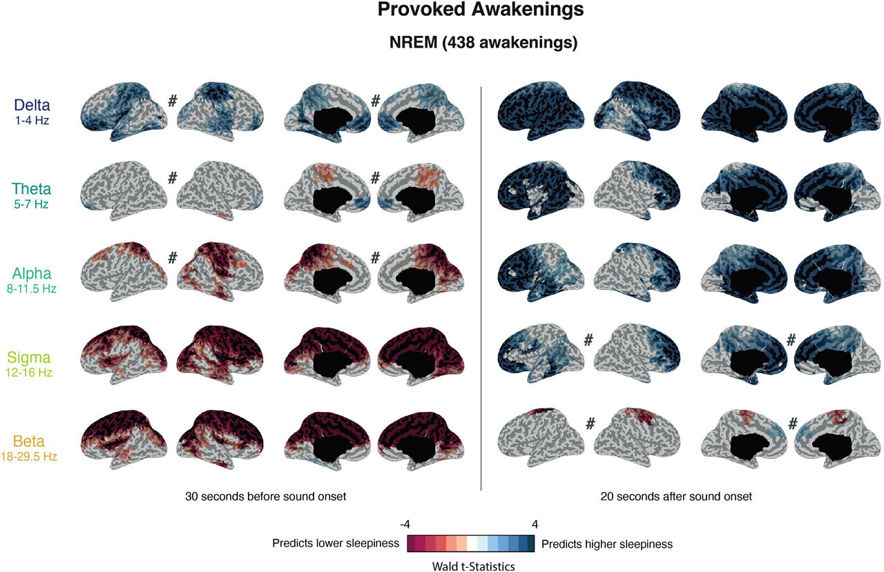 Выяснилось, что при пробуждении из REM-сна нейронная активность, характерная для бодрствования, распространяется от лобных долей к затылочным. Однако при пробуждении из глубокого сна паттерн сначала появляется в центральной «горячей точке» глубоко в мозге, а затем следует той же схеме «спереди назад».