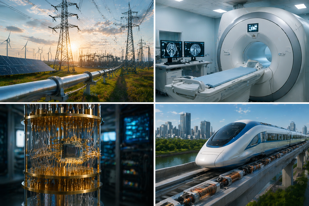 Высокотемпературные сверхпроводники нужны там, где критичны потери энергии и мощные магнитные поля: в электросетях для более эффективной передачи электричества без нагрева, в медицине (МРТ) и научных ускорителях для создания сильных магнитов, в термоядерных установках для удержания плазмы, в магнитных поездах для стабильной левитации, а также в ряде чувствительных измерительных приборов и некоторых квантовых вычислительных схемах, где важны минимальные энергетические потери и высокая стабильность сигналов.