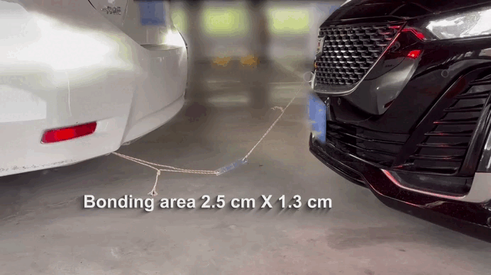 В ходе демонстрации небольшой кусочек клея размером всего 2,5 на 1,3 сантиметра смог отбуксировать автомобиль весом 2,1 тонны.