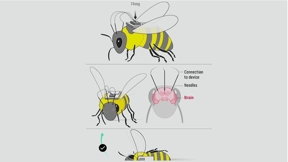 Команда под руководством профессора Чжао Цзелиана создала самый легкий в мире мозговой контроллер для насекомых — он весит всего 74 миллиграмма, что меньше веса мешочка с нектаром, который обычно несут рабочие пчелы. Устройство крепится к спине пчелы и подключается к ее мозгу с помощью трех микроскопических игл. Через эти иглы передаются электрические импульсы, которые создают у пчелы иллюзию необходимости двигаться в определенном направлении — налево, направо, вперед или назад. В ходе экспериментов пчелы реагировали на команды в 90% случаев.