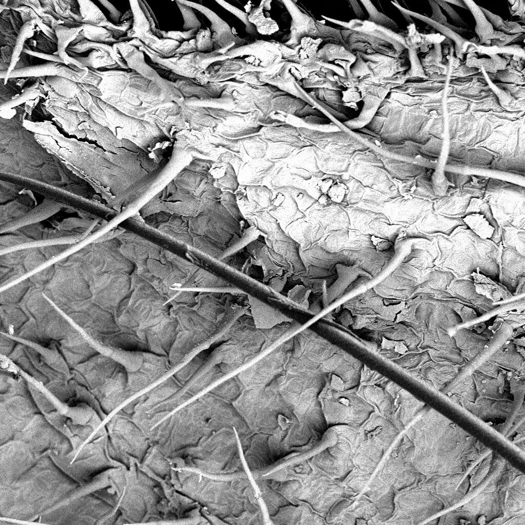 Для изучения шерсти под электронным микроскопом исследовательницы нарезали образцы и покрыли их золотом. Детальные изображения сплетенного с шерстью растительного материала показали как зазубренные края, так и трихомы — шипообразные выступы, которые торчат, как зубья. В зависимости от вида растения, эти микроструктуры в 2–20 раз длиннее, чем толщина кошачьих волос — то есть как раз подходящего размера, чтобы зацеплять их.