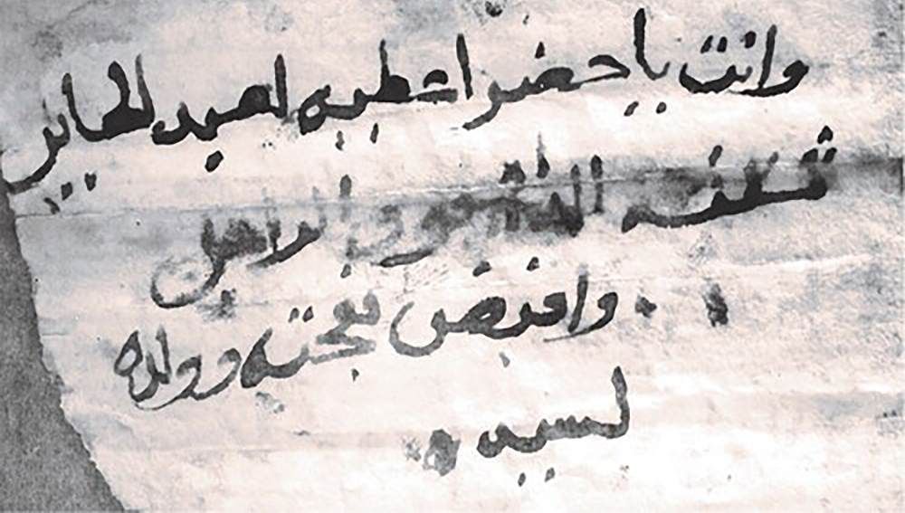 И ты, Хидр, отдай Абд аль-Джабиру три хлопковых ткани и голову (или: три хлопковых головных убора) и получи овцу с приплодом для их хозяина».