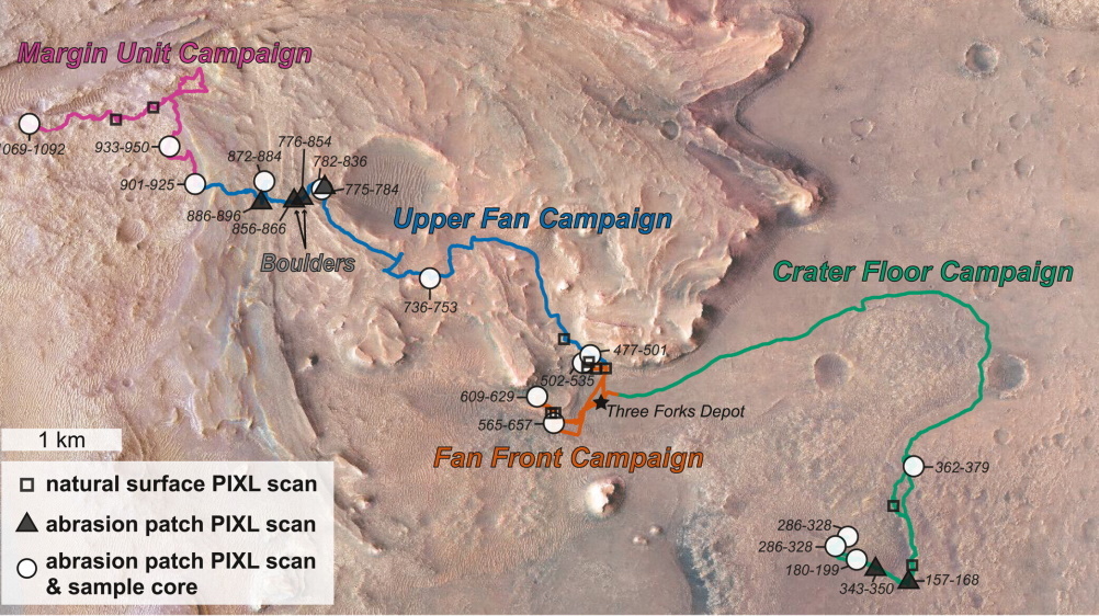 Инструмент Perseverance PIXL облучает марсианские породы рентгеновскими лучами, чтобы выявить их химический состав. Минералы формируются при определенных условиях температуры, pH и химического состава жидкостей, что делает их надежными рассказчиками об истории планеты. Вода химически изменяет породы, создавая соли или глинистые минералы.