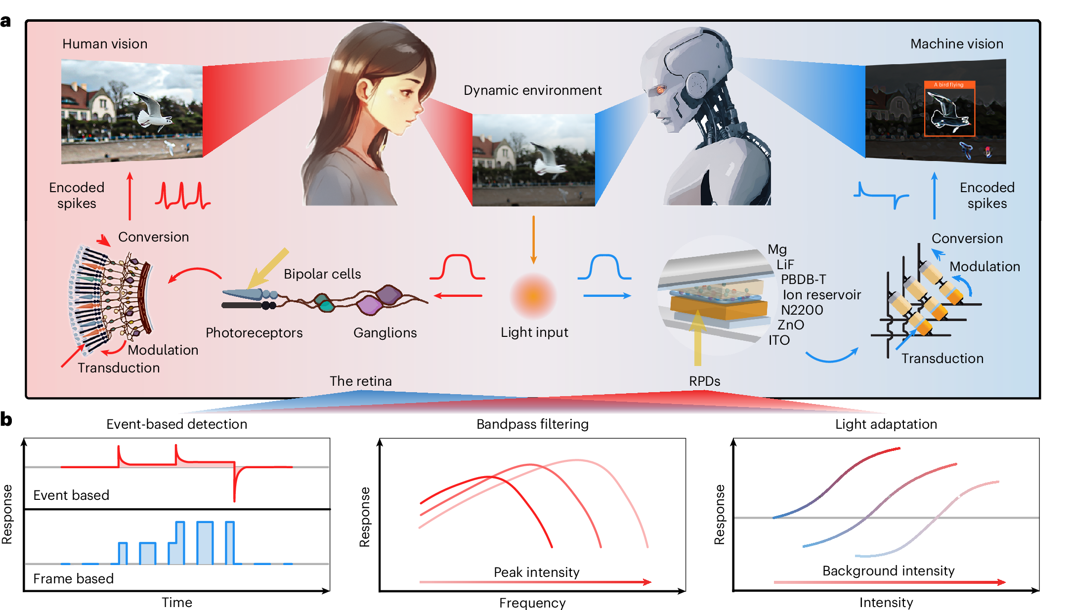 «Современные сенсоры машинного зрения, включая кадровые и событийные типы, часто оказываются несостоятельными из-за их ограниченной временной динамики по сравнению с человеческой сетчаткой, что препятствует их общей производительности и адаптивности, — написано в статье. — Мы представляем событийный ретиноморфный фотодиод (RPD), который имитирует слоистую структуру и сигнальный путь сетчатки».
