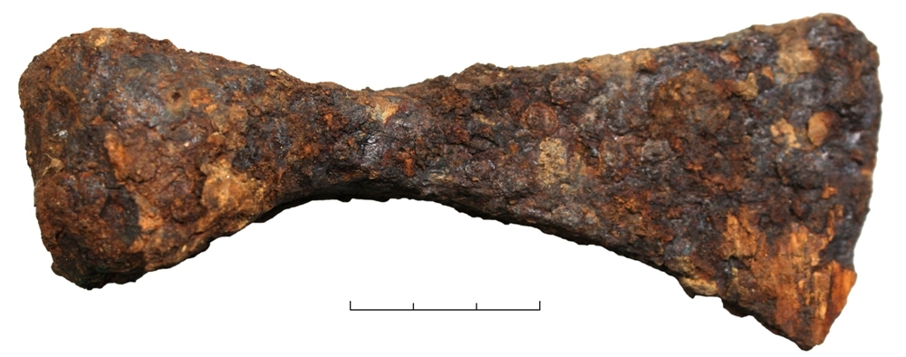 Два из этих погребений — мужские. В одну из могил были положены лишь железный нож, кремень, весовая гирька, фрагмент монеты и небольшой керамический сосуд. Сопровождающий инвентарь другого включал металлические детали пояса, нож, кресало, кремень и узколезвийный боевой топорик, лежавший справа у бедра. Это шестое погребение с боевым топором, исследованное в Гнездилове. Рядом, в его ногах, на той же площадке, — погребение другого мужчины, лежавшего изначально на правом боку, с подогнутыми ногами, в тесной могильной яме, без сопровождающих вещей. Это редкая для погребальных памятников средневековой Руси демонстрация социального неравенства, отношений личной зависимости или насильственного разрешения конфликтов.