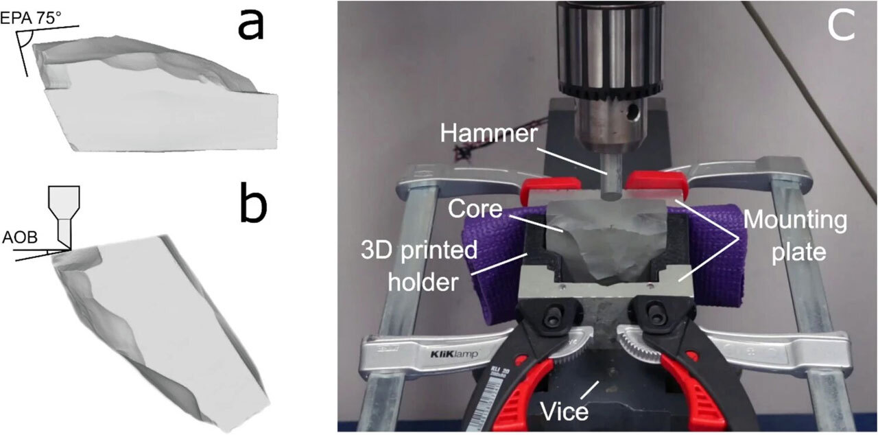 Ученые из Вуллонгонгского университета экспериментально убедились, как сильно влияет угол удара на изготовление орудий из камня, и пришли к выводу о более высоком уровне когнитивного контроля у древних мастеров, чем считалось ранее. Эти результаты противоречат широко распространенной модели, согласно которой форма отщепов определяется в основном геометрией и жесткостью каменной основы, от которой они откалываются.