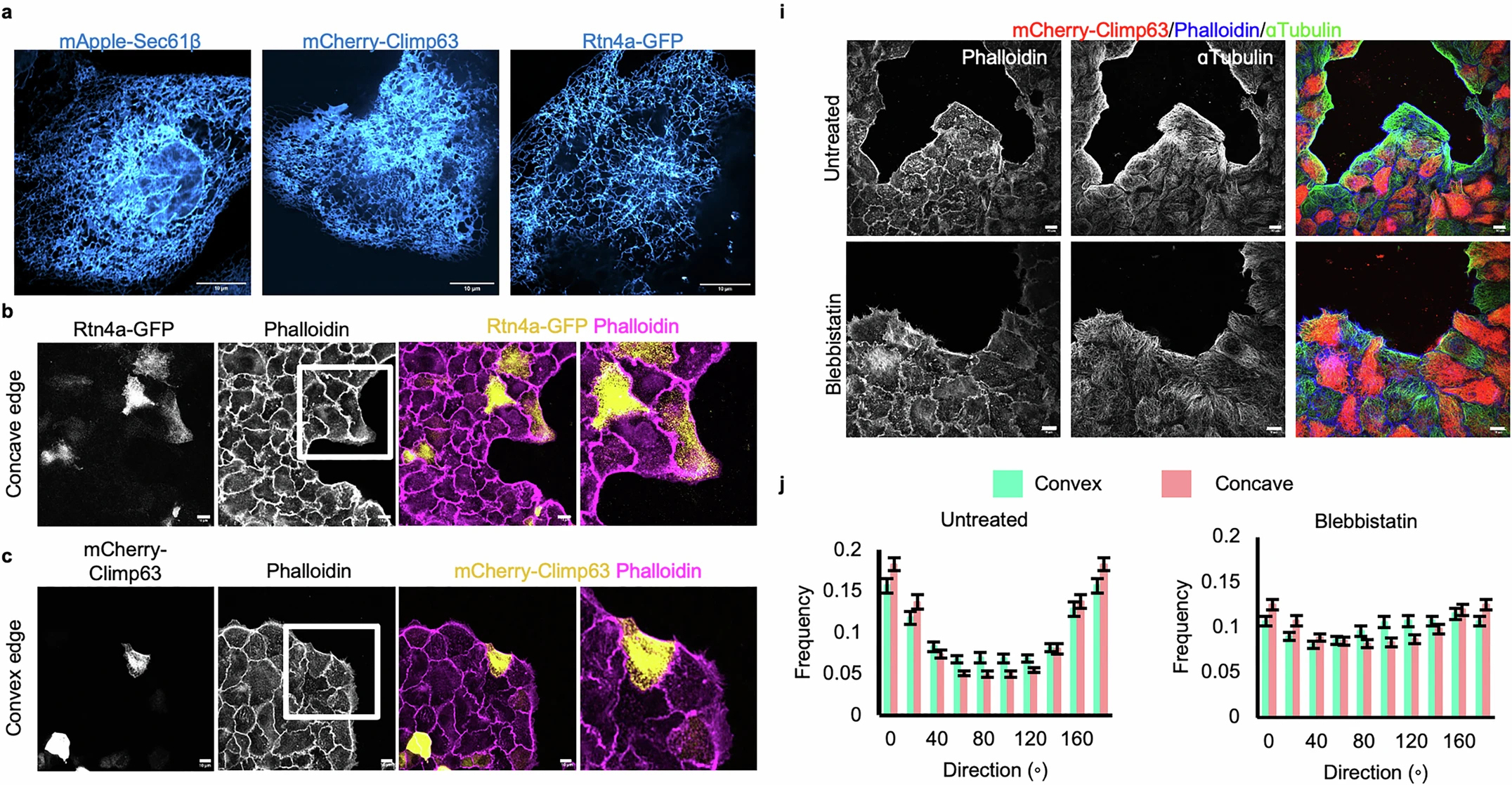 Количественный анализ направленности микротрубочек в клетках (j).