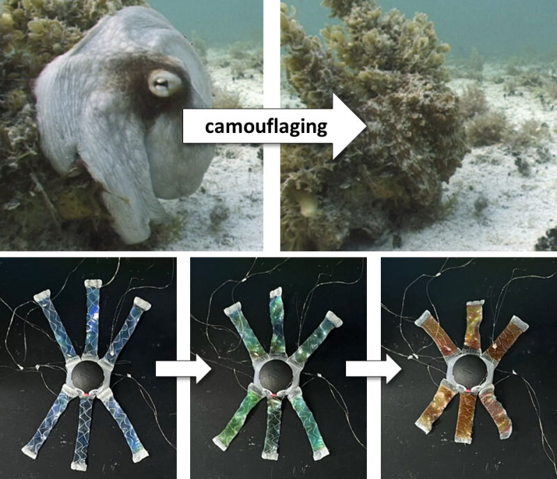В Исследовательском центре функциональных композитных материалов Корейского института науки и технологий (KIST) создан мягкий робот OCTOID, который по примеру осьминога свободно меняет цвет и форму. Статья о разработке опубликована в журнале Advanced Functional Materials.