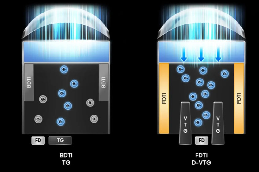 Когда пиксели становятся настолько маленькими, с ними возникает много технических проблем. Главная из них — свет и электрический сигнал начинают «мешать» друг другу, из-за чего падает качество изображения. Чтобы этого избежать, в сенсоре используется особая конструкция с глубокими изоляционными перегородками, которые физически разделяют пиксели и не дают сигналам смешиваться.