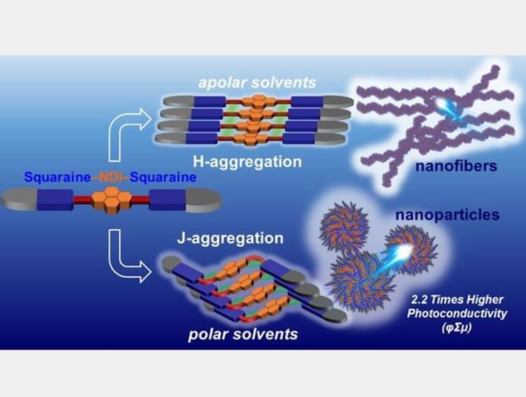В зависимости от растворителя TISQ собирается по-разному. В полярных растворах она образует маленькие «шарики» типа J, в неполярных — длинные «волокна» типа H. Шарики J почти вдвое эффективнее передают электроны, чем волокна H, когда на них попадает свет. Представьте, что это как дороги: широкие прямые дороги (J) быстрее доставляют машины, а узкие извилистые (H) тормозят поток.