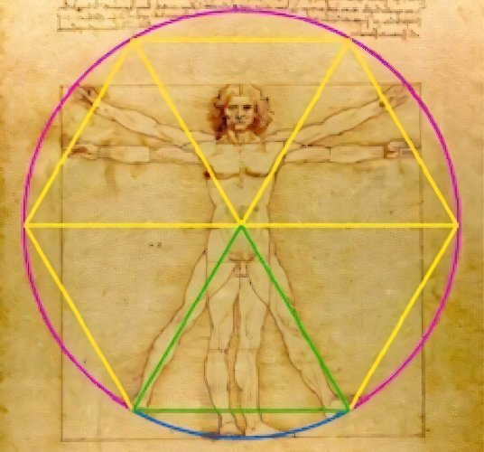 Новое исследование лондонского стоматолога Рори Мак Свини, опубликованное в Journal of Mathematics and the Arts, предлагает ответы. В статье описывается скрытая деталь в Витрувианском человеке, а именно равносторонний треугольник между ногами человека, упоминаемый в записях да Винчи.