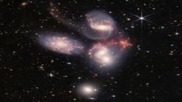 Слияния галактик — ключевой процесс формирования крупных галактик в ранней Вселенной. Обычно фиксируются взаимодействия двух галактик, тогда как система, названная «квинтетом JWST», объединяет пять галактик и 17 скоплений звезд.