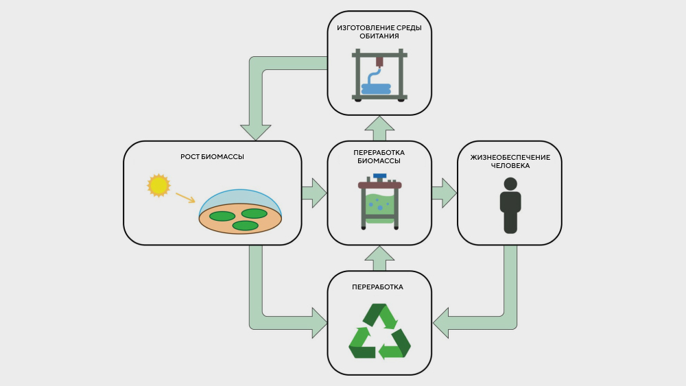 «Представьте эти камеры как маленькие теплицы, где водоросли растут, питаясь углекислым газом и льдом, которые уже есть на Марсе. Водоросли производят биомассу, которую можно переработать в новый биопластик для создания дополнительных камер или других структур. Это похоже на замкнутый цикл, где отходы одного процесса становятся ресурсом для другого», — объясняют ученые