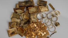 Удивительная находка была сделана в начале февраля, но о ней было объявлено недавно. Она включает 598 золотых монет, изысканные ювелирные изделия и различные артефакты, общим весом в семь килограмм, из которых почти 3,7 килограмма приходится на золото.