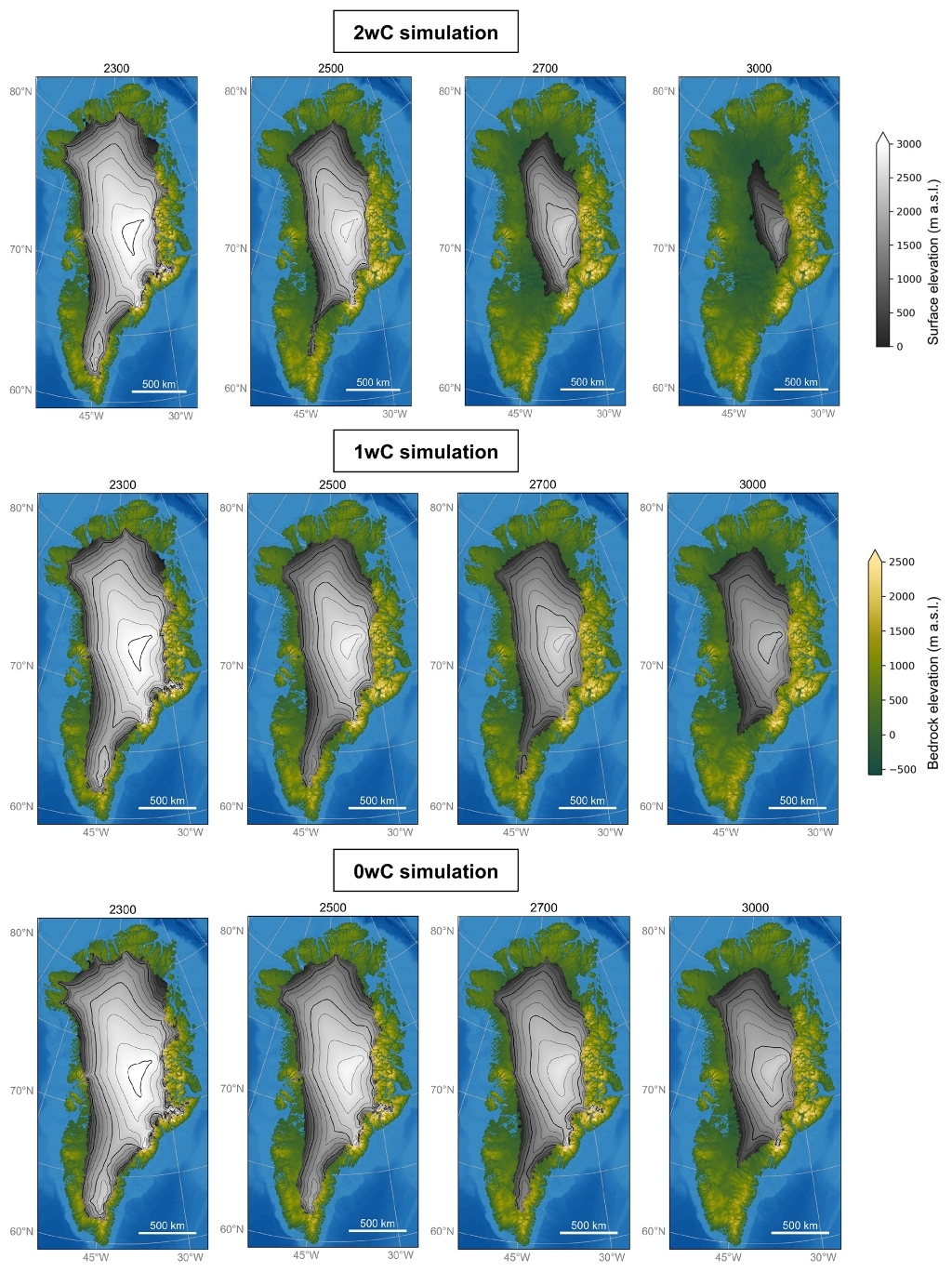По итогам моделирования, с учетом всех этих обратных связей, Гренландский ледяной щит может потерять почти весь свой лед в течение следующего тысячелетия, что приведет к повышению уровня моря более чем на семь метров.