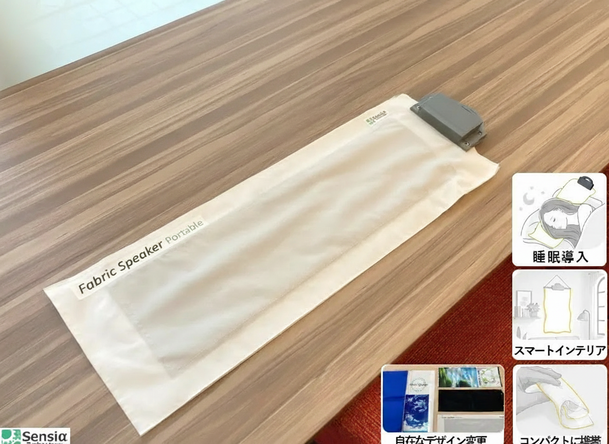 Японский стартап Sensia Technology Co Ltd представил портативную версию необычного аудиоустройства — тканевого динамика. По виду и на ощупь он больше напоминает мягкий текстиль или полоску ткани, чем привычную колонку. Его можно носить с собой, повесить на стену как гобелен или разместить рядом с подушкой и постельным бельем, слушая музыку без проводов и жестких корпусов.