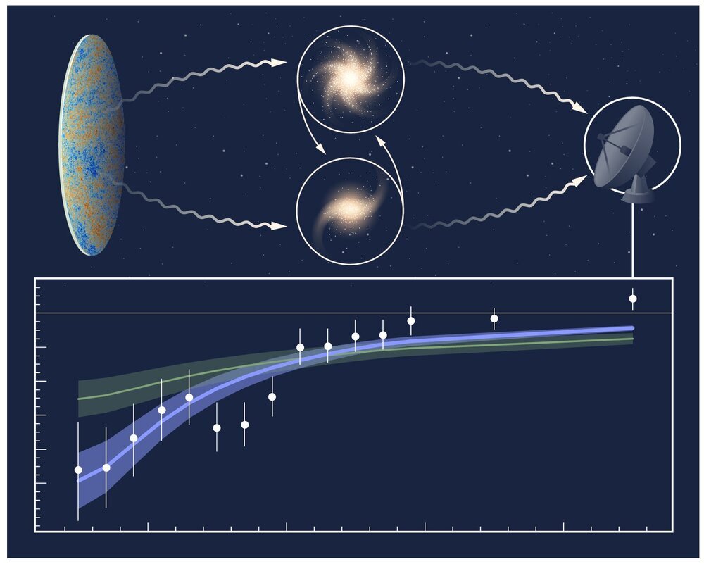 Этот сигнал проходит через скопления галактик и слегка искажается под действием их массы. По этим искажениям можно оценивать распределение материи и силу гравитации на масштабах в сотни миллионов световых лет.